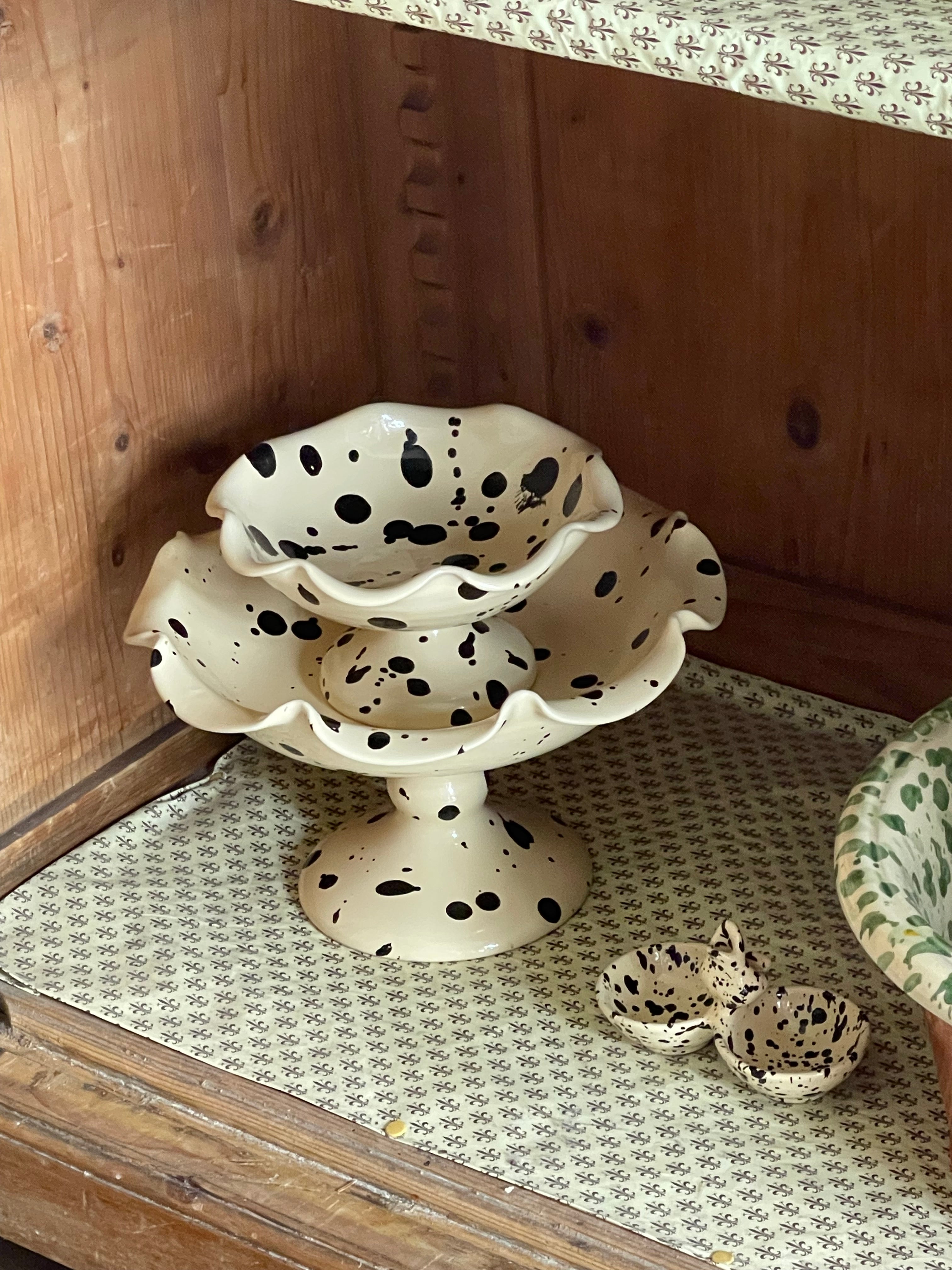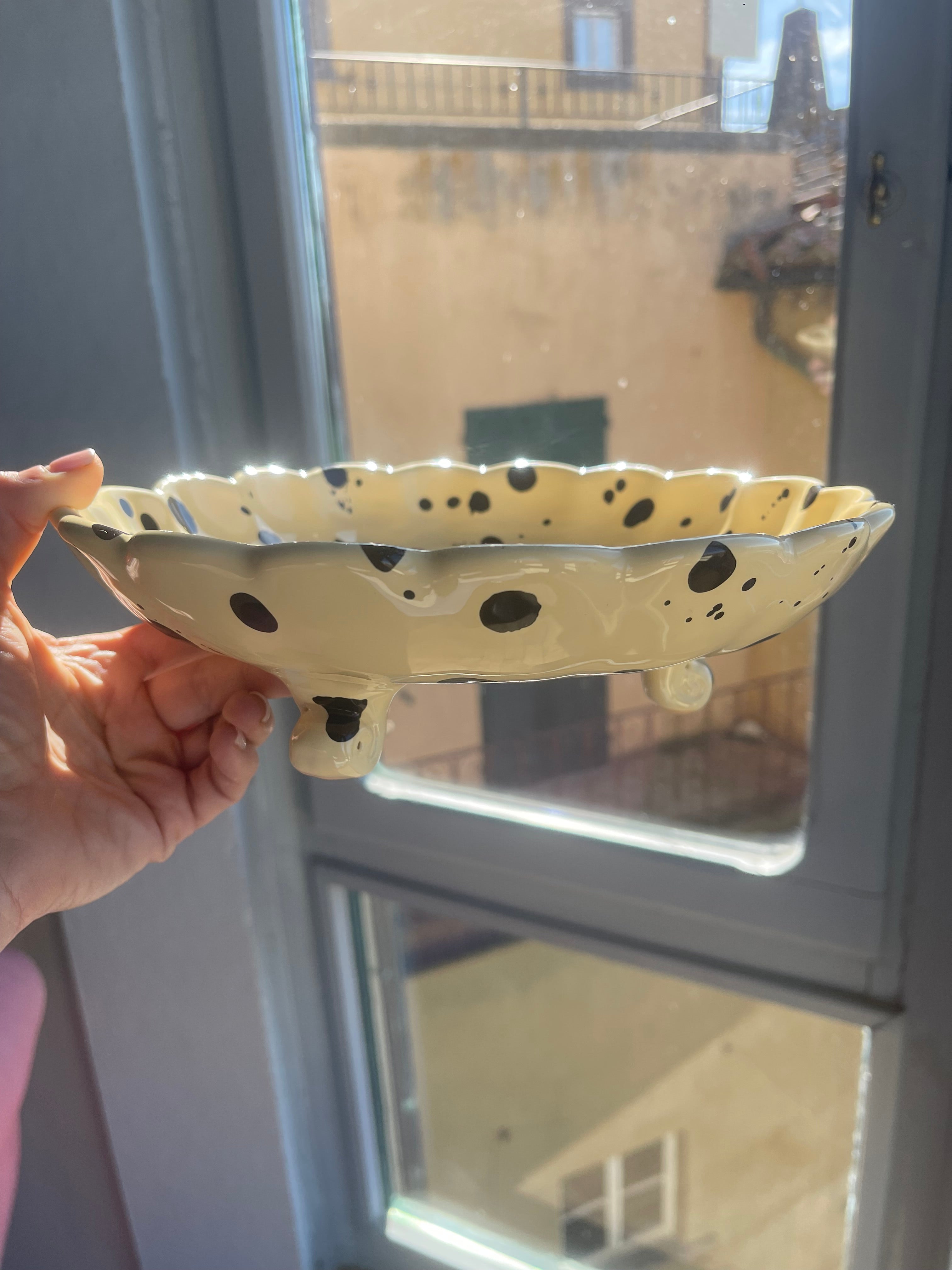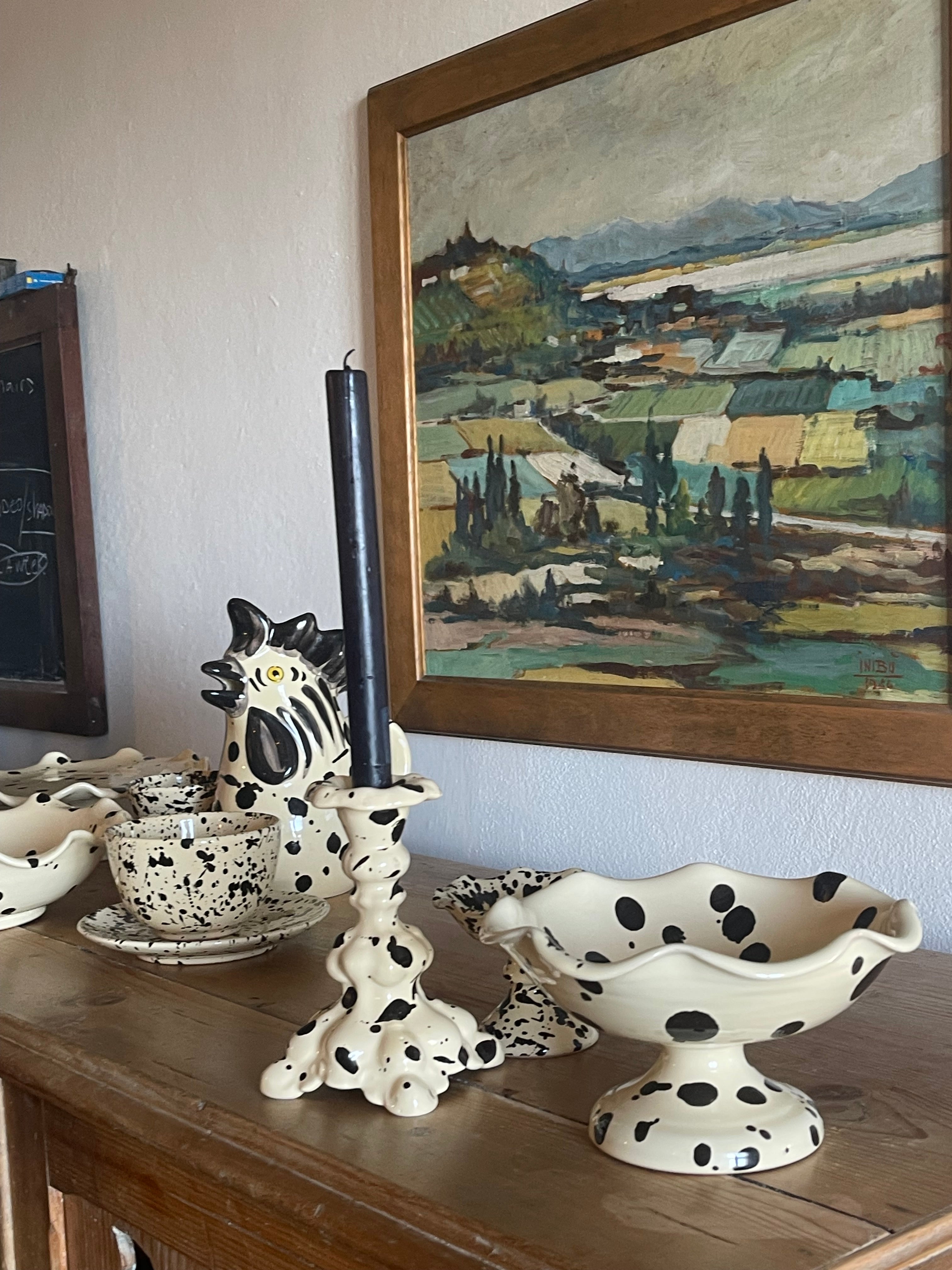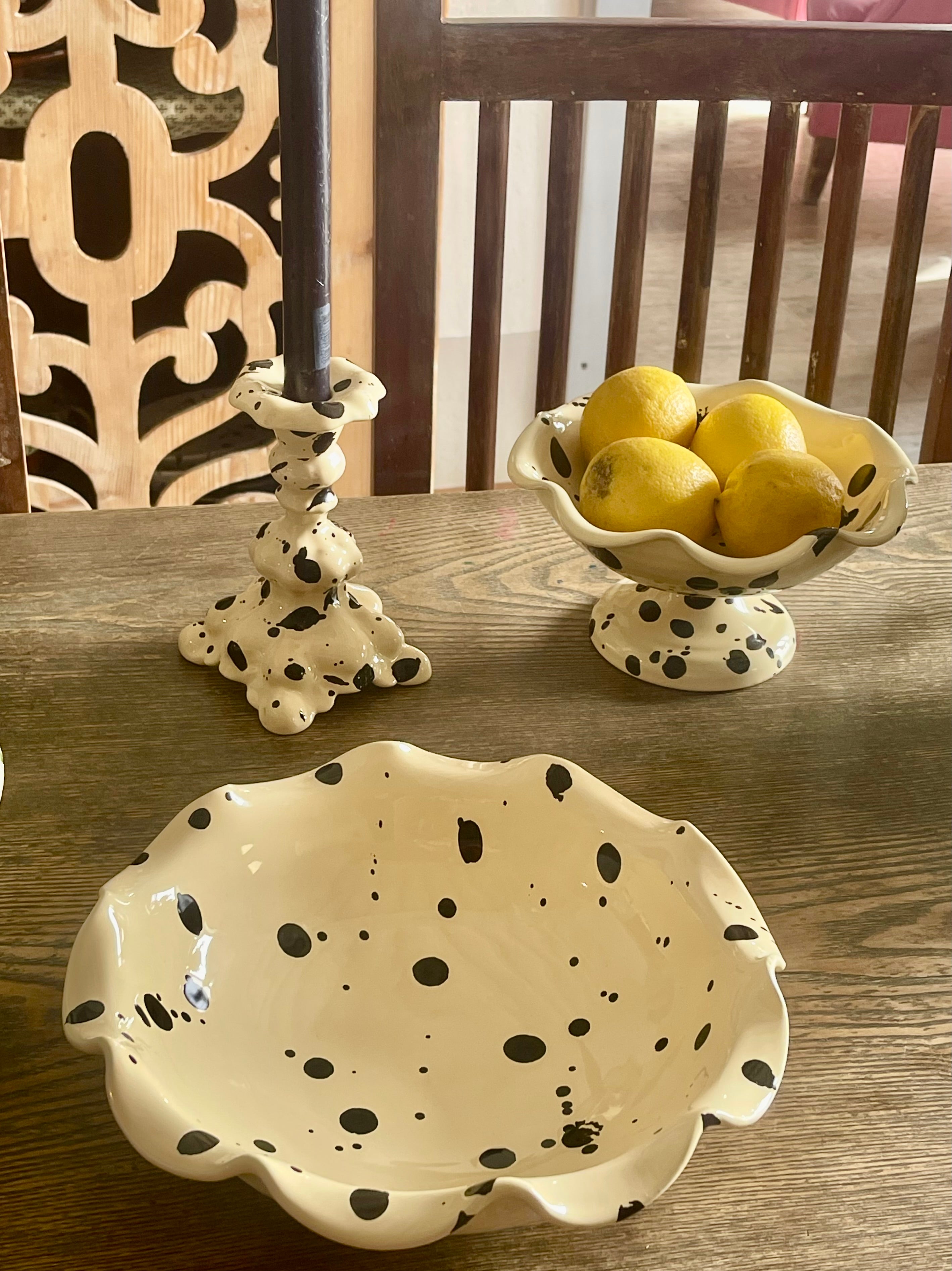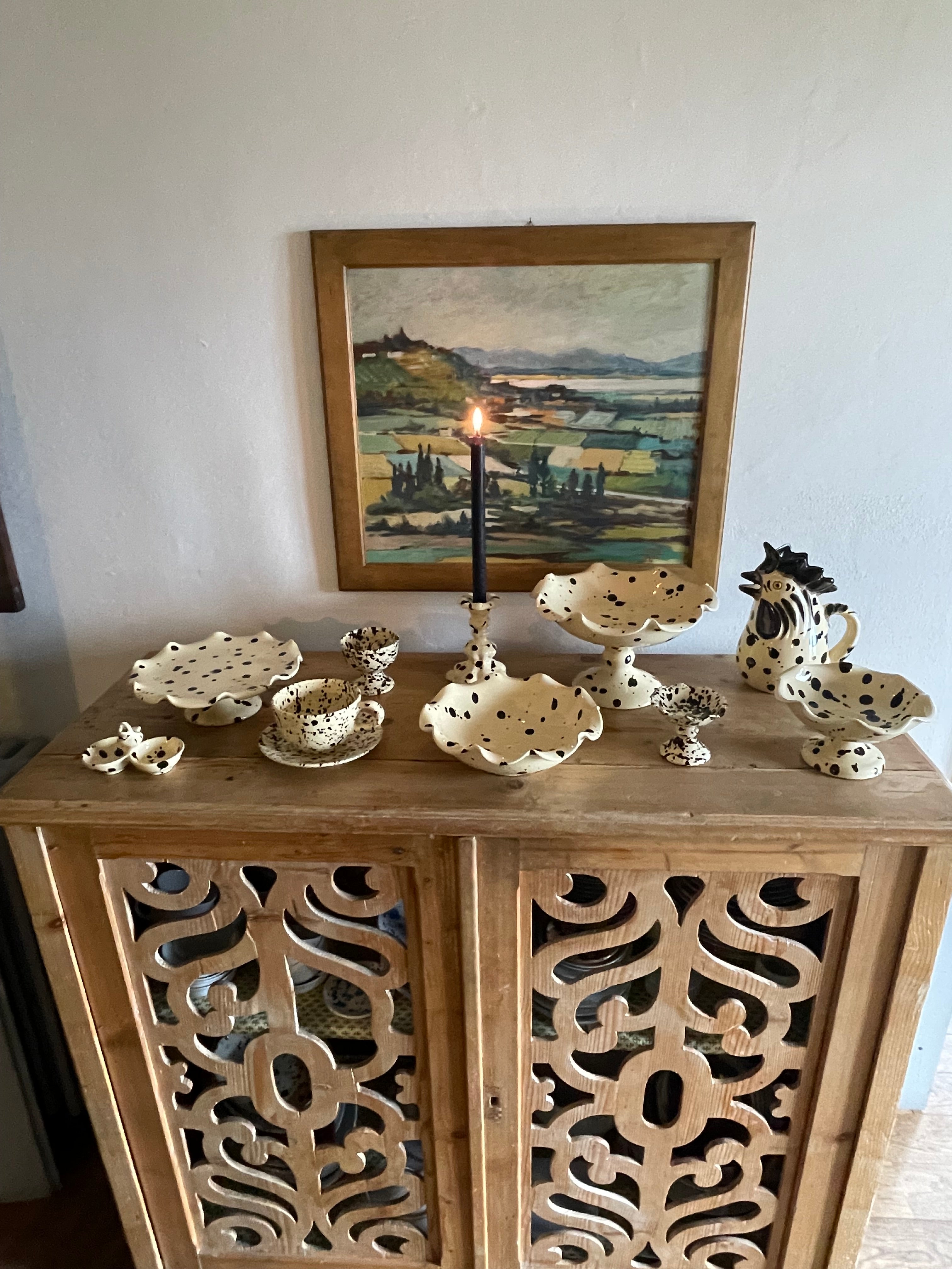 The Manganese Curvy Serving collection is inspired by the aesthetics of my Italian grandmother's home. Its elegant and romantic design pays homage to traditional Italian ceramics, with skilled artisans in Deruta, Umbria carefully handcrafting and hand painting each piece. The classic Manganese pigment on an avorio cream glaze base adds a modern touch to this timeless shape.